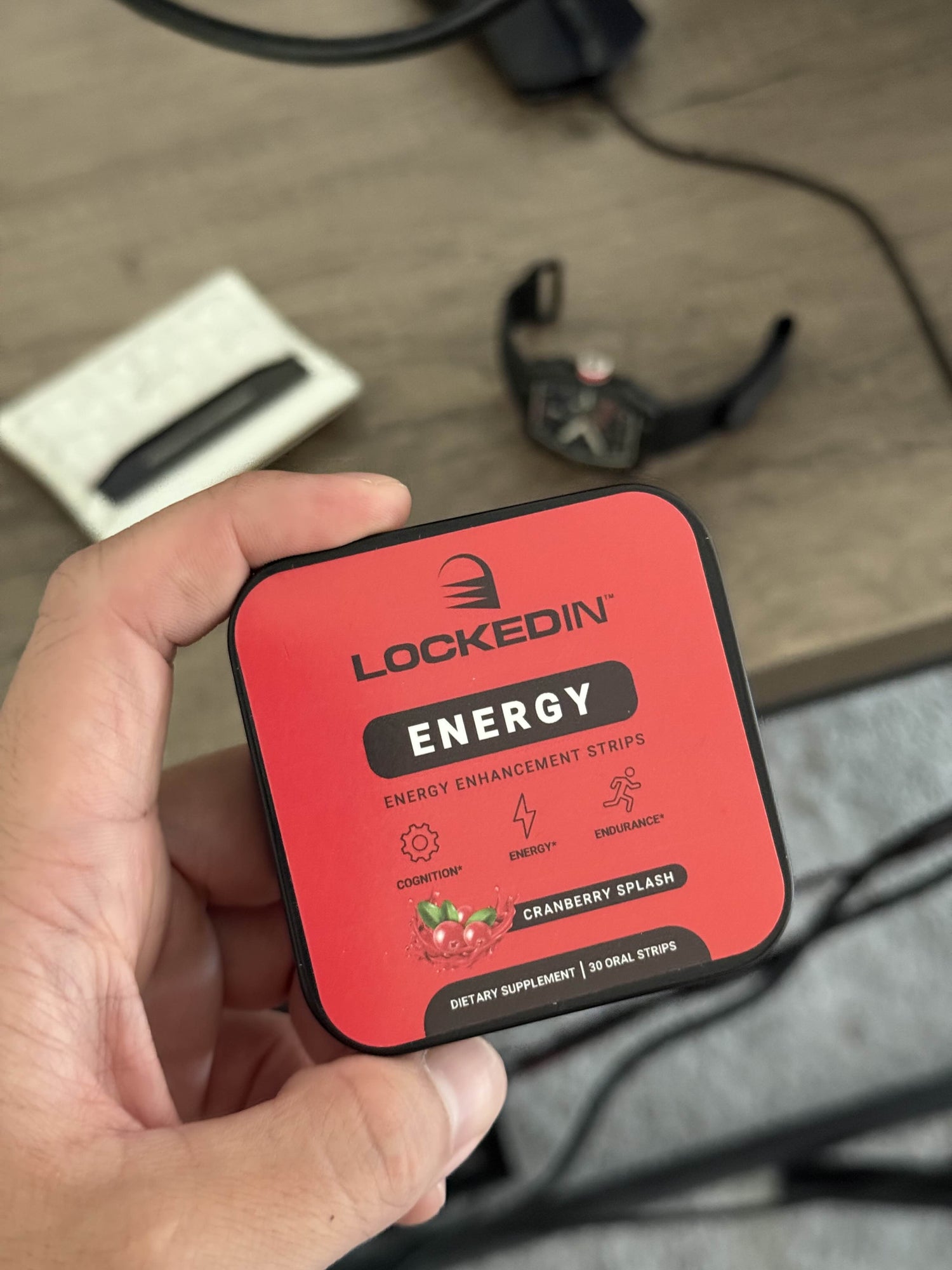 LOCKED IN ENERGY™ is a research-backed energy supplement that dissolves on your tongue in 30 seconds.